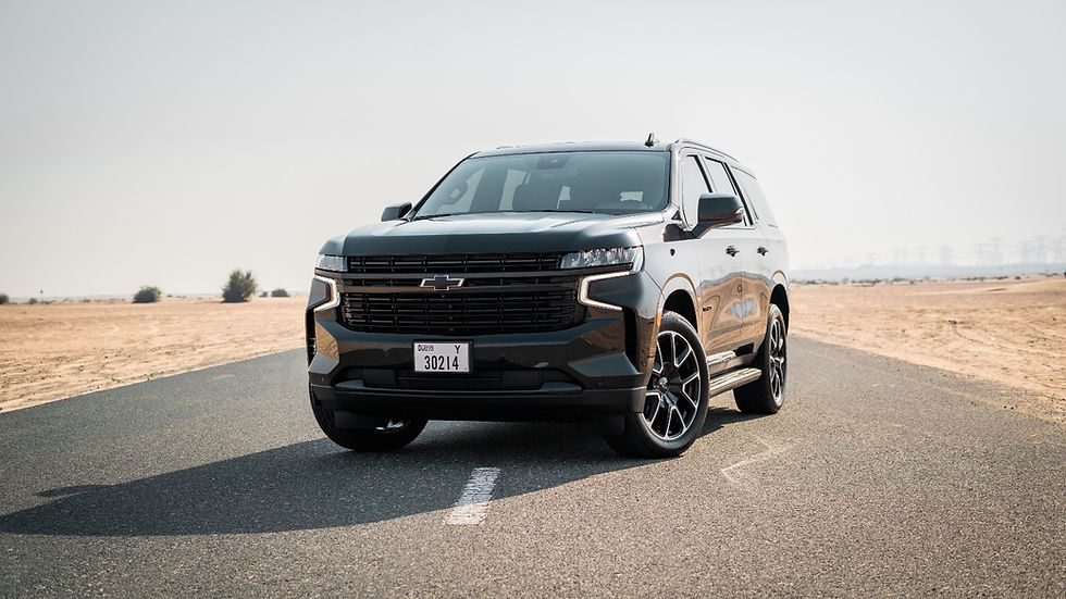 Looking for a powerful and luxurious SUV to rent in Dubai? Discover the 2023 Chevrolet Tahoe RST 6.2L V8 in sleek Black, available exclusively at Smart Rent. With its commanding presence and high-performance capabilities, this SUV is built to impress.